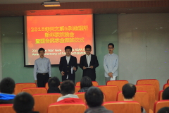 晚会开始,首先由天文系系主任刘富坤教授致辞,刘老师总结了过去一年里天文系师生在科研活动方面的重大进展和研究亮点,并对大家送上了新年的祝福。 接着科维理所所长Luis Ho教授深情回顾了他履职一年来的心路历程, 畅谈了KIAA在过去一年举办的各类活动以及取得的各项成绩,并对所有员工的付出表示了感谢。 随后,国家天文台的郝晋新副台长致辞, 作为北大毕业生的郝台向大家介绍了未来我国天文发展的重大机遇, 诚挚地邀请天文系学生毕业后能到天文台工作。接着他和杜红荣处长为六名天文系的本科生颁发了国台奖学金并合影留念。奖学金颁发完毕后,博士生刘项琨对2014年本科生、研究生活动进行了总结。