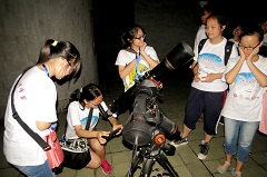 当天傍晚,全体营员乘专车来到北京师范大学参观学习。北师大的老师和研究生们非常热情地接待了来访的营员们。由北师大天文系副系主任付建宁老师主持的“天文之夜”活动,在详尽地介绍了该校天文系之余,又为同学们准备了多项天文体验活动。其中,张燕平老师组织的“开阳星”观测活动,令许多同学们大开眼界。