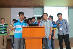 7月18日晚,2013年全国中学生天文夏令营在同学们自导自演的一场别开生面的联欢晚会中结束。北京大学天文系系主任吴学兵教授、北京师范大学天文系张保洲书记、国家天文台人教处杜红荣处长和北京天文馆朱进馆长亲临晚会并为每个营员颁发证书。其中,朱进馆长还在晚会中为同学们献歌一曲,将晚会的气氛带到高潮。至此,为期四天的天文夏令营圆满结束。