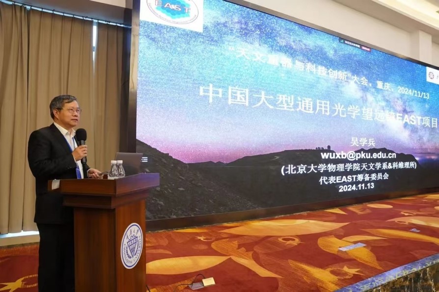 10月31日:在浙江大学举行的中国天文学会2024年学术年会仪器与时频分会场,吴学兵教授做了“中国大型通用光学望远镜EAST进展介绍”的会议报告。