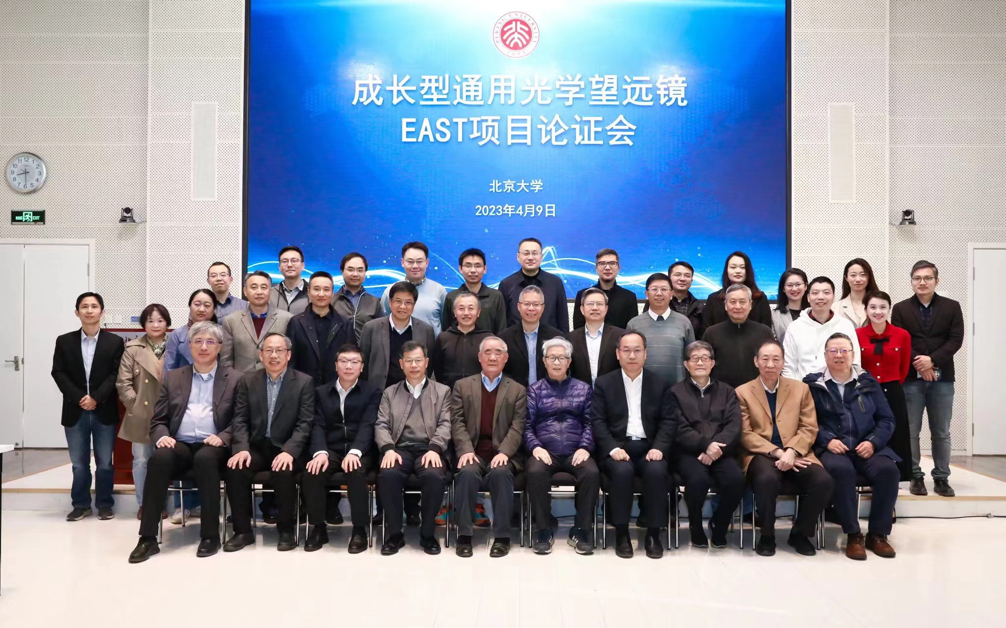 4月9号:由北京大学牵头的“成长型通用光学望远镜EAST项目”论证会在物理学院西楼思源多功能厅举行。北京大学副校长张锦院士、物理学院院长高原宁院士、科维理天文与天体物理研究所所长何子山院士等领导与特邀专家以及EAST望远镜项目筹备组成员等30余人参加。出席论证会的15位特邀专家包括陈建生、李惕碚、顾逸东、汪景琇、景益鹏、韩占文、常进、高原宁、史生才(线上)、赵刚十位院士。与会专家在认真听取了三个详细汇报,经过讨论形成论证意见,认为项目建设非常必要,科学目标明确,所用技术成熟、可行性强,进度安排和经费预算合理,建设台址优良,一致同意通过项目论证,建议尽快筹集经费,加强国内合作,启动项目建设。
