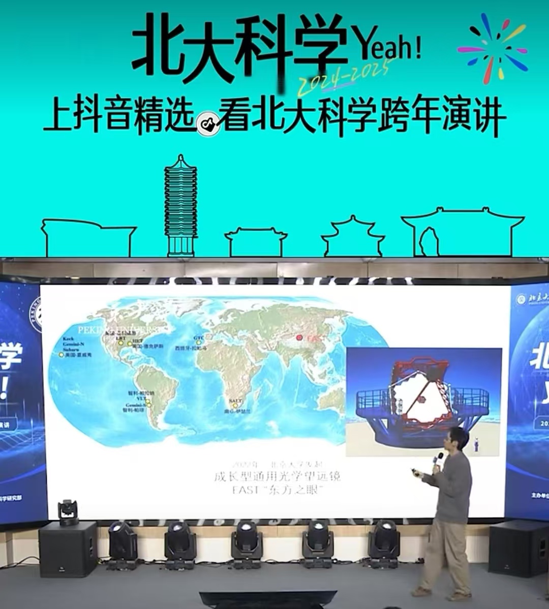 12月27日:在北大科学Yeah上,天文学系校友刘博洋博士应邀做了“向深空!“东方之眼”大口径光学望远镜”的报告,介绍了EAST光学望远镜项目。EAST的建设将补足目前全球大型光学望远镜分布形态。期待EAST项目能团结中国天文界形成合力,开启持续向深空探索的新篇章!